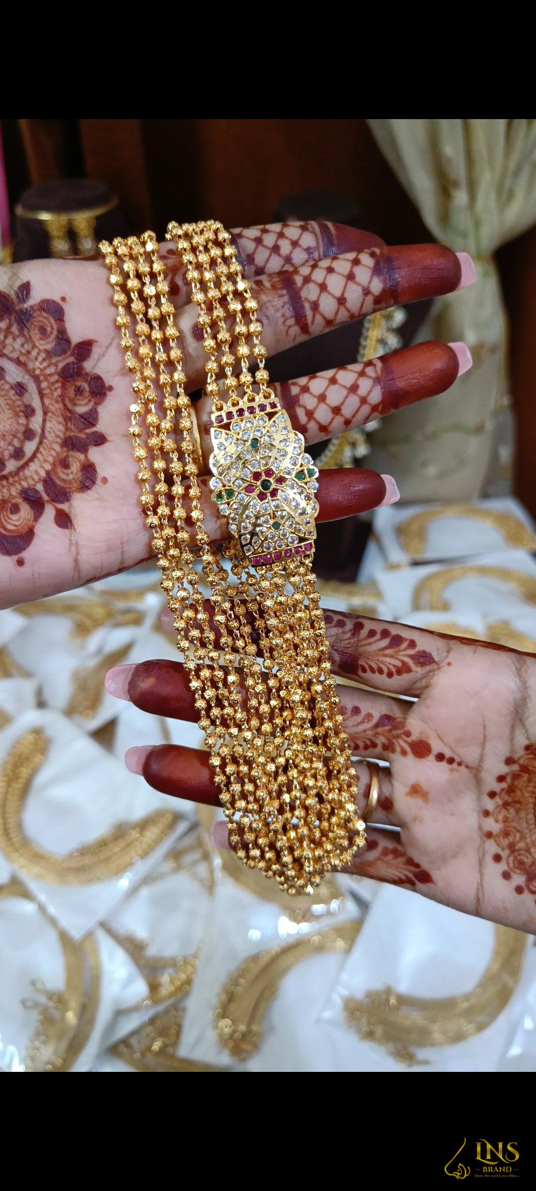 Beautiful Chandhraharam WithHigh Quality Golg Polish And Stones.