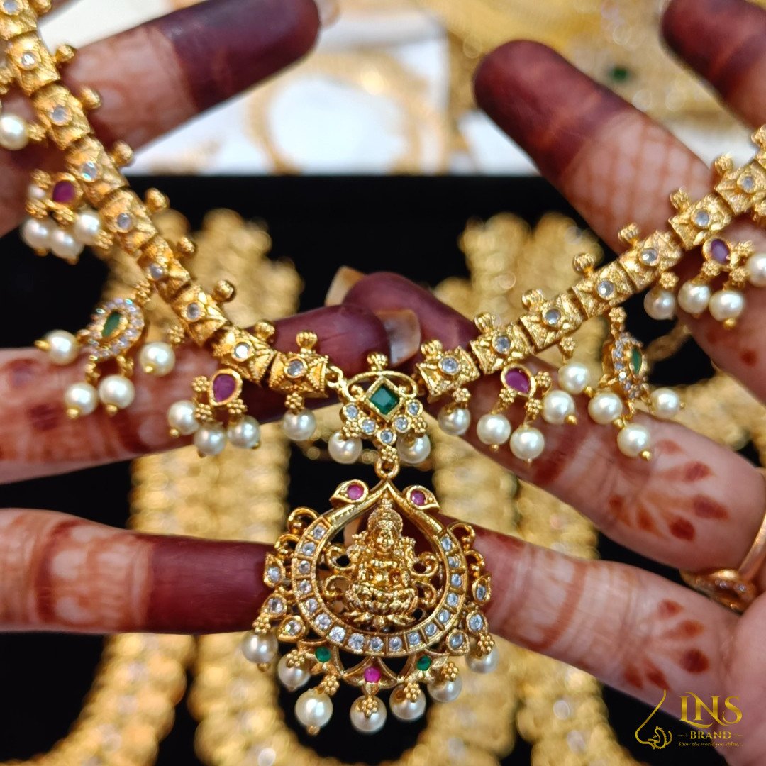 this Neckset highlighted with pearls and stones. Earrings included.